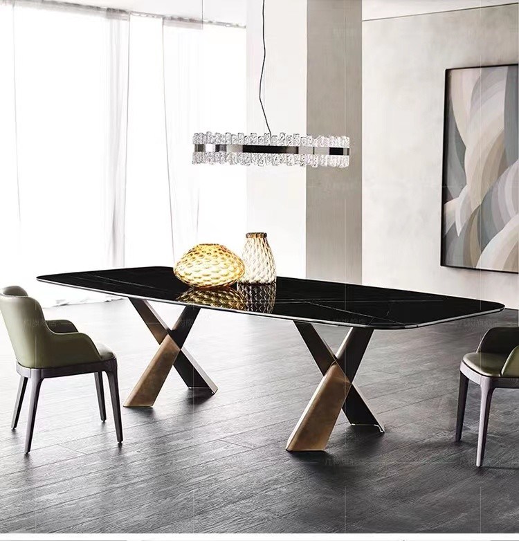 پایه طلایی سنگی مدرن لوکس با مبلمان اتاق ناهار خوری سرامیکی |